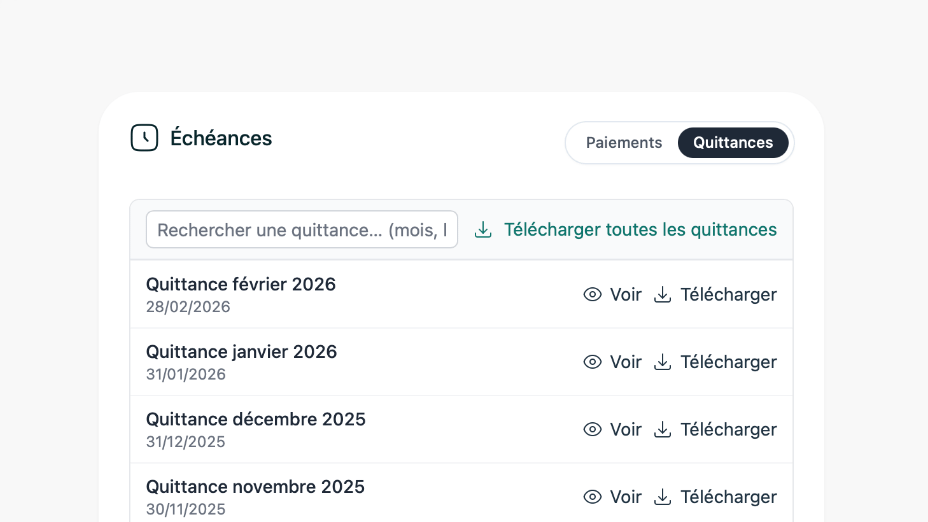Centralisez vos locations : suivi des loyers, documents et quittances, relances et historique. Une gestion claire, simple et fiable pour propriétaires bailleurs.